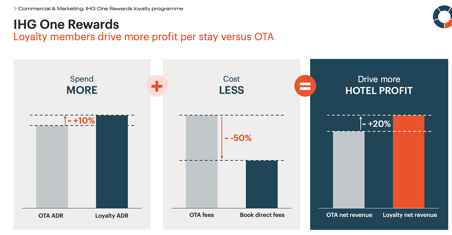 Alongside a potential growth inflection, IHG's revamped loyalty program, IHG One Rewards, is a powerful engine that both improves business economics and widens the company's competitive moat.